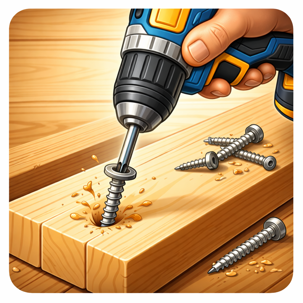 đĢ Niet draaien zonder dat de schroef goed vastzit in het hout.
